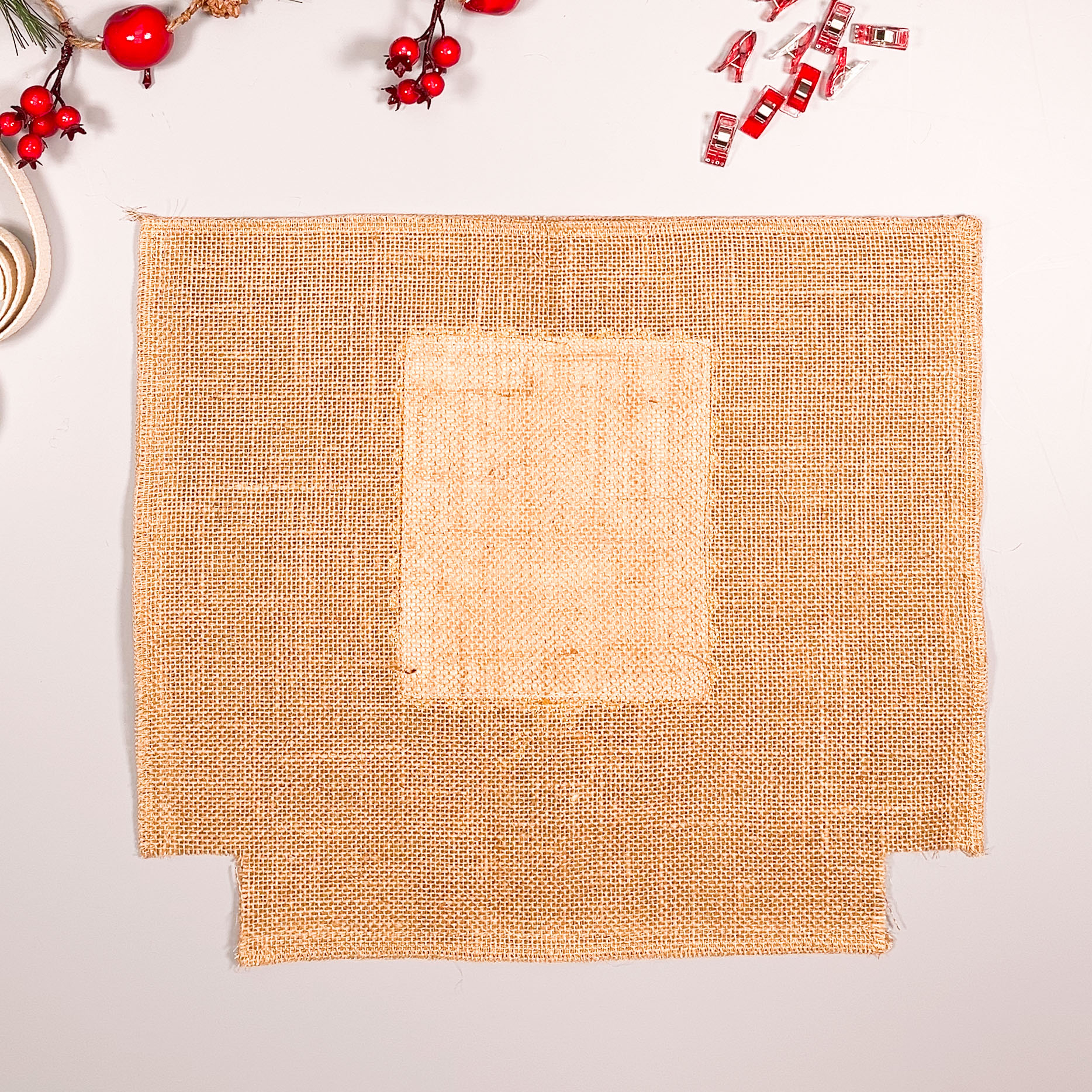 1. Lege nun die beiden Jutezuschnitte rechts auf rechts aufeinander,