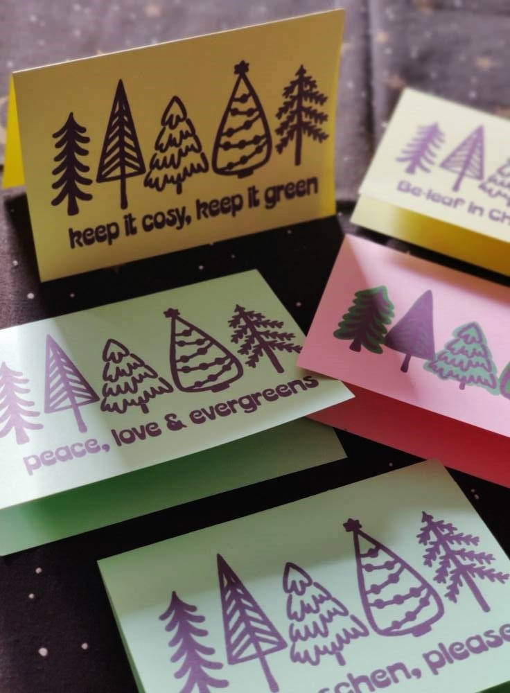 Mit der Plotterdatei Tannenbäume erhältst du ein Tannenmotiv in fünf Varianten, mal einfarbig, mal mehrfarbig und mit unterschiedlichen Sprüchen. So kannst du je nach Projekt den passenden Spruch auswählen oder die Motive farblich kombinieren. Durch die klaren Linien lassen sich die Dateien schnell schneiden und leicht entgittern – ideal für Anfänger und Fortgeschrittene.