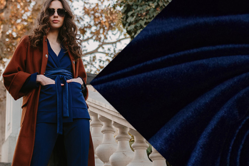 Samt ist ein relativ schwerer Stoff mit dichter Struktur, der Körperwärme gut hält – ideal für festliche Kleidung in Herbst und Winter.