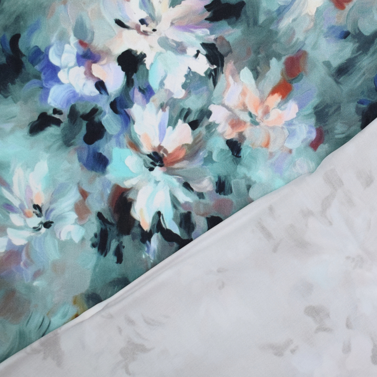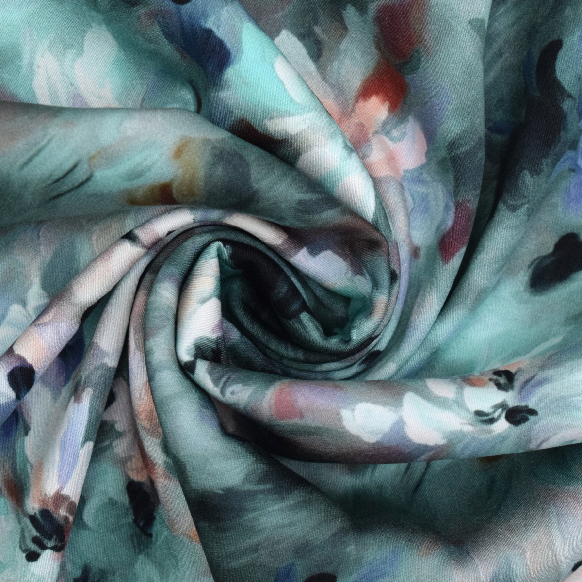 Stretch Viskosesatin Aquarell Flowers, grün Art.Nr.: 22298-325